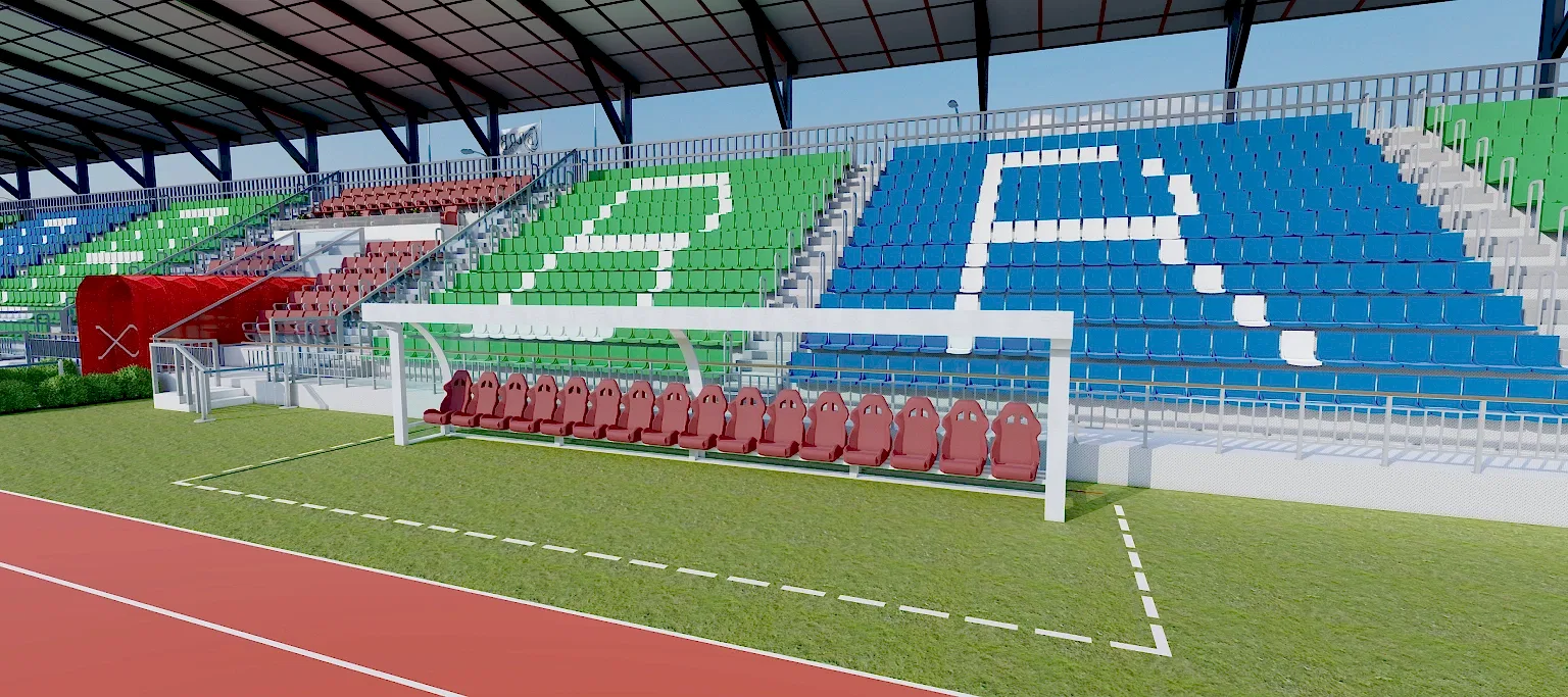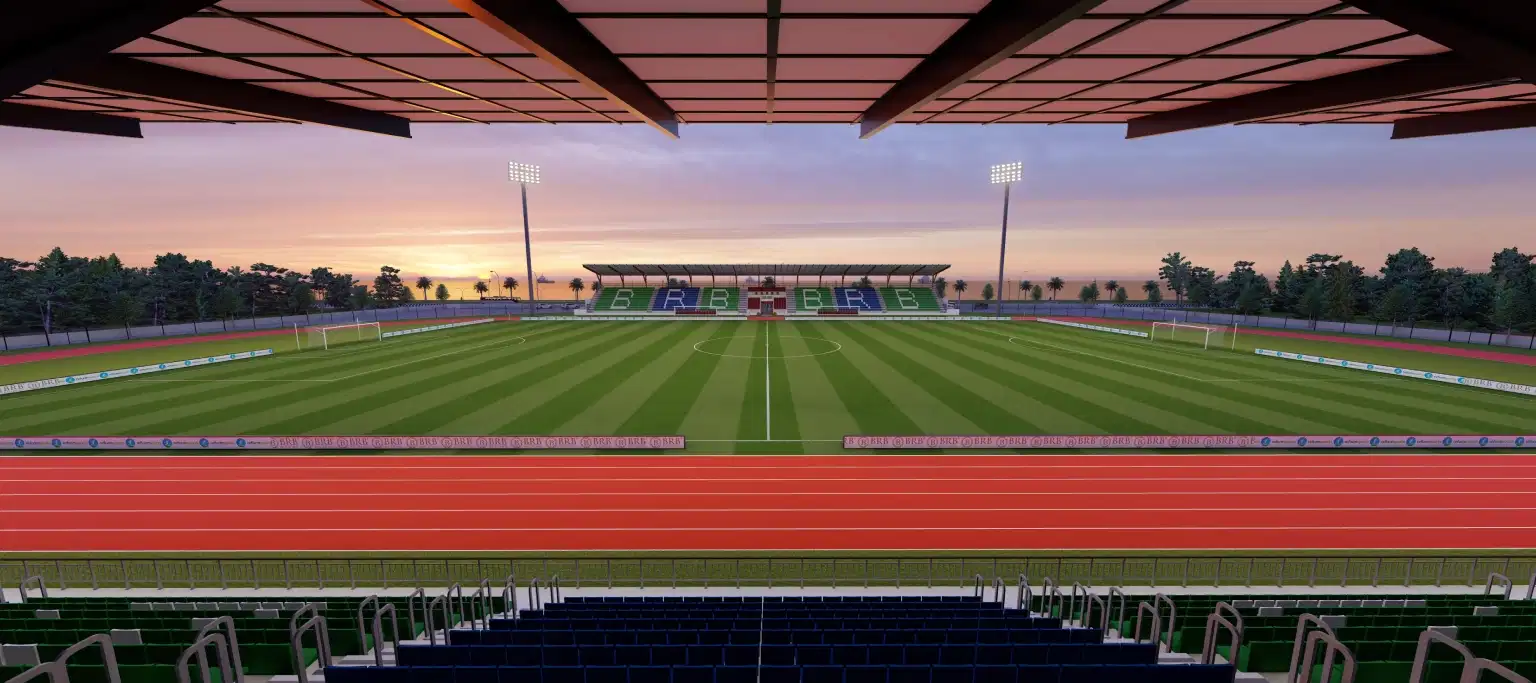 FIFA standartlarına uygun olarak tasarlanan 1.000 kişilik atletizm pistli stadyum projemiz, uzun ömürlü, yüksek performanslı yeni nesil sentetik çim, kapalı tribünler, geniş otopark alanı ve isteğe bağlı antrenman sahası ile modern spor tesislerimizden biri olarak öne çıkmaktadır.