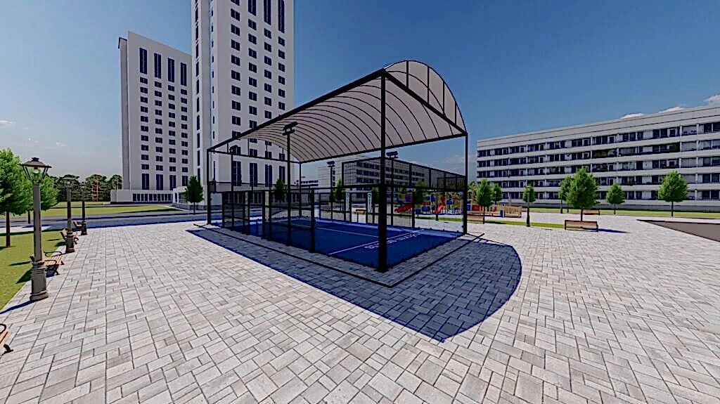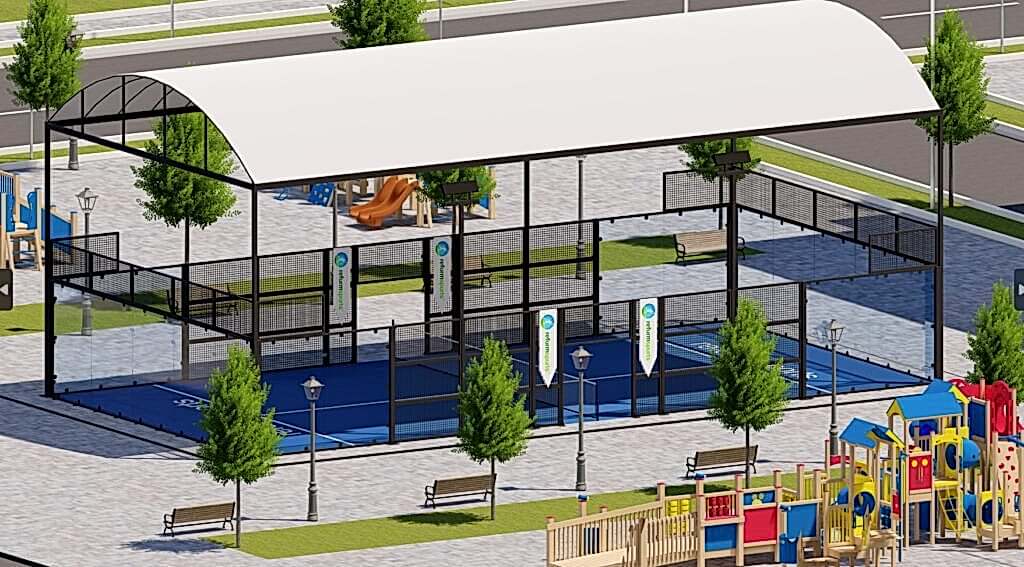 Panoramik padel kortunun uzun kenarlarına aydınlatma direkleri monte edilir ve her direğe 200W LED projektörler yerleştirilir. Bu projektörlerin montajı ve elektrik altyapısı, sahanın enerji ihtiyacını güvenli bir şekilde karşılayacak şekilde tamamlanır. Böylece kort, günün her saati optimum aydınlatmayla kullanılabilir hale getirilir.