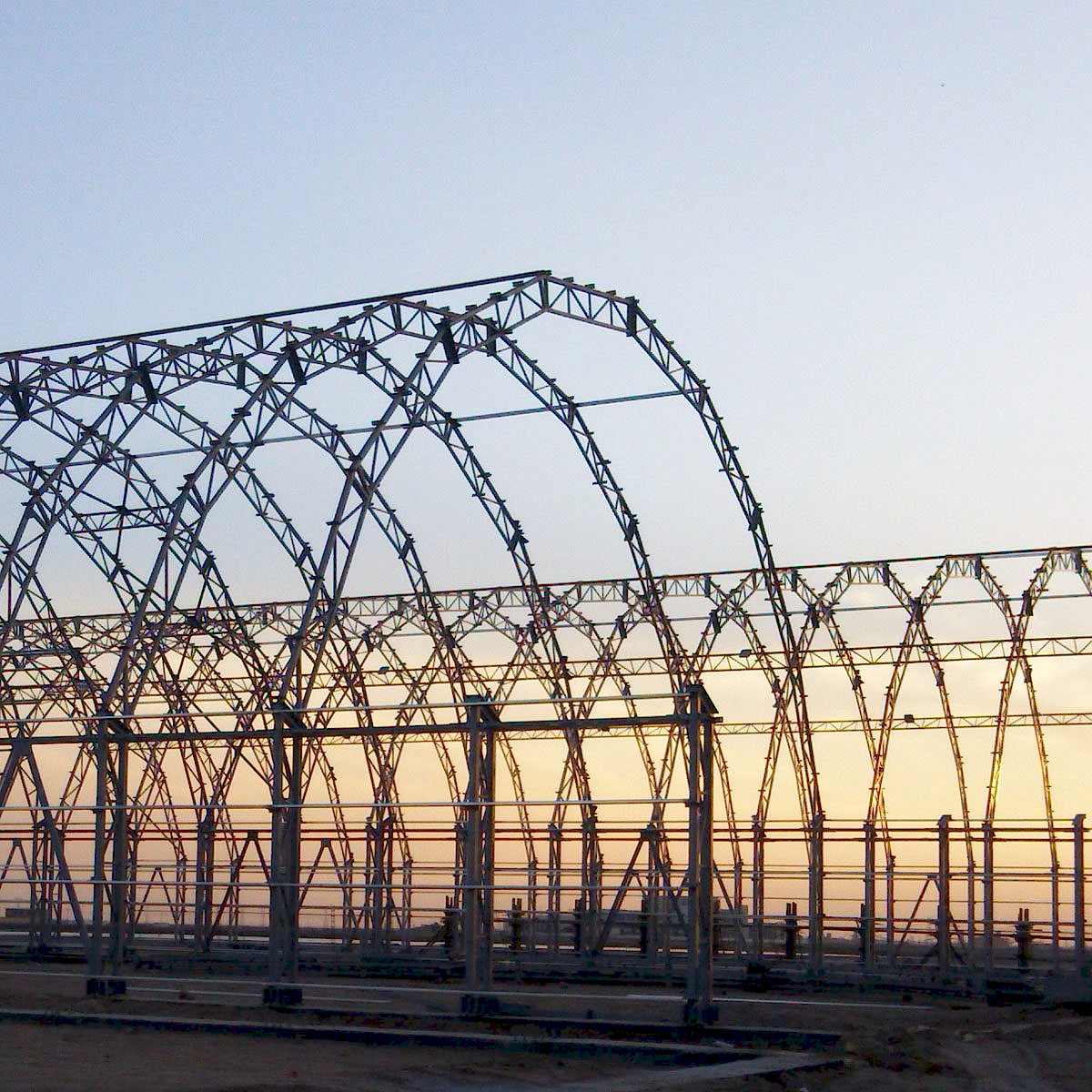 Yıllık 200.000 m² üretim kapasitesine sahip çelik konstrüksiyon bölümünde; kapalı spor salonları, futbol sahaları, tenis kortları, tribün ve hayvan barınakları için çelik çatı sistemleri imalatı yapılmaktadır.